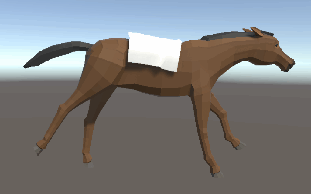 ゼッケンの揺れという意味では、皮膚に近い実装なので胴体に連動して動きますが、布のように風に揺れるなどはなくなります。目指しているゲームとしてそれでまったく問題ないです。ゼッケンは実際の競馬でもポリエステルを主原料としており、帯で固定されているためほとんど揺れません。