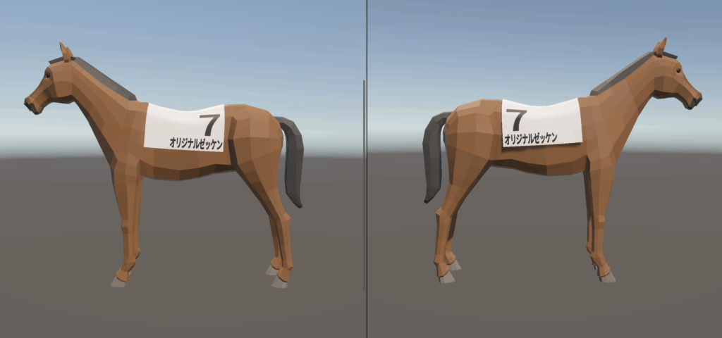 Unity にインポートし、馬番と馬名をゼッケンに焼き付けます。